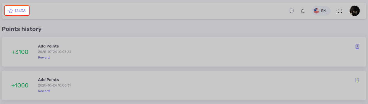 - Начисление баллов при получении награды (по желанию).