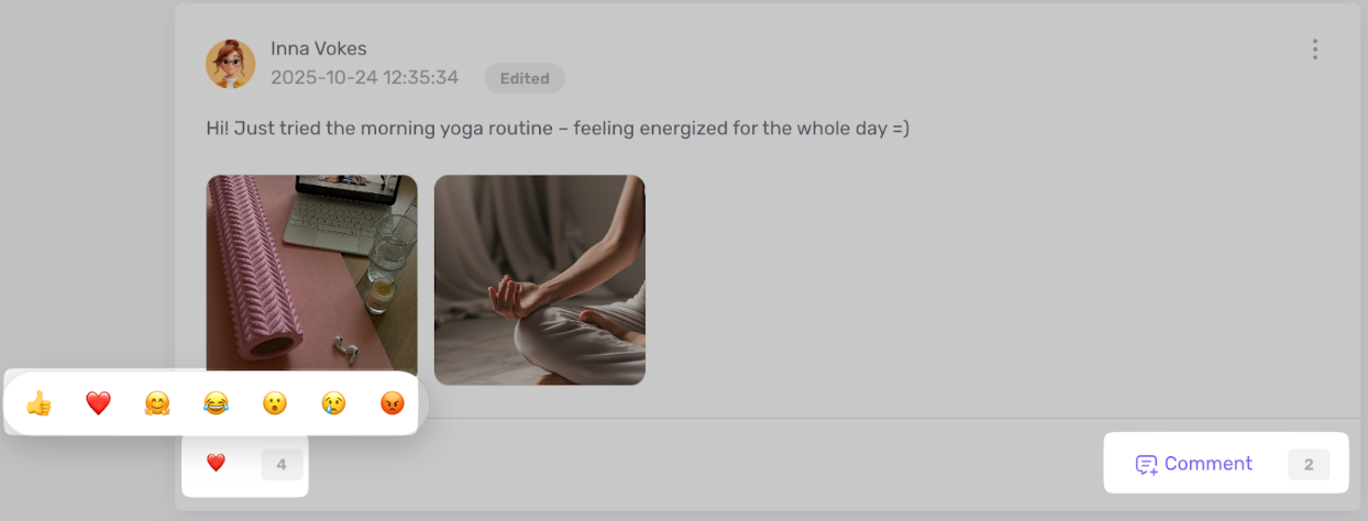 - Комментарии и реакции к постам.