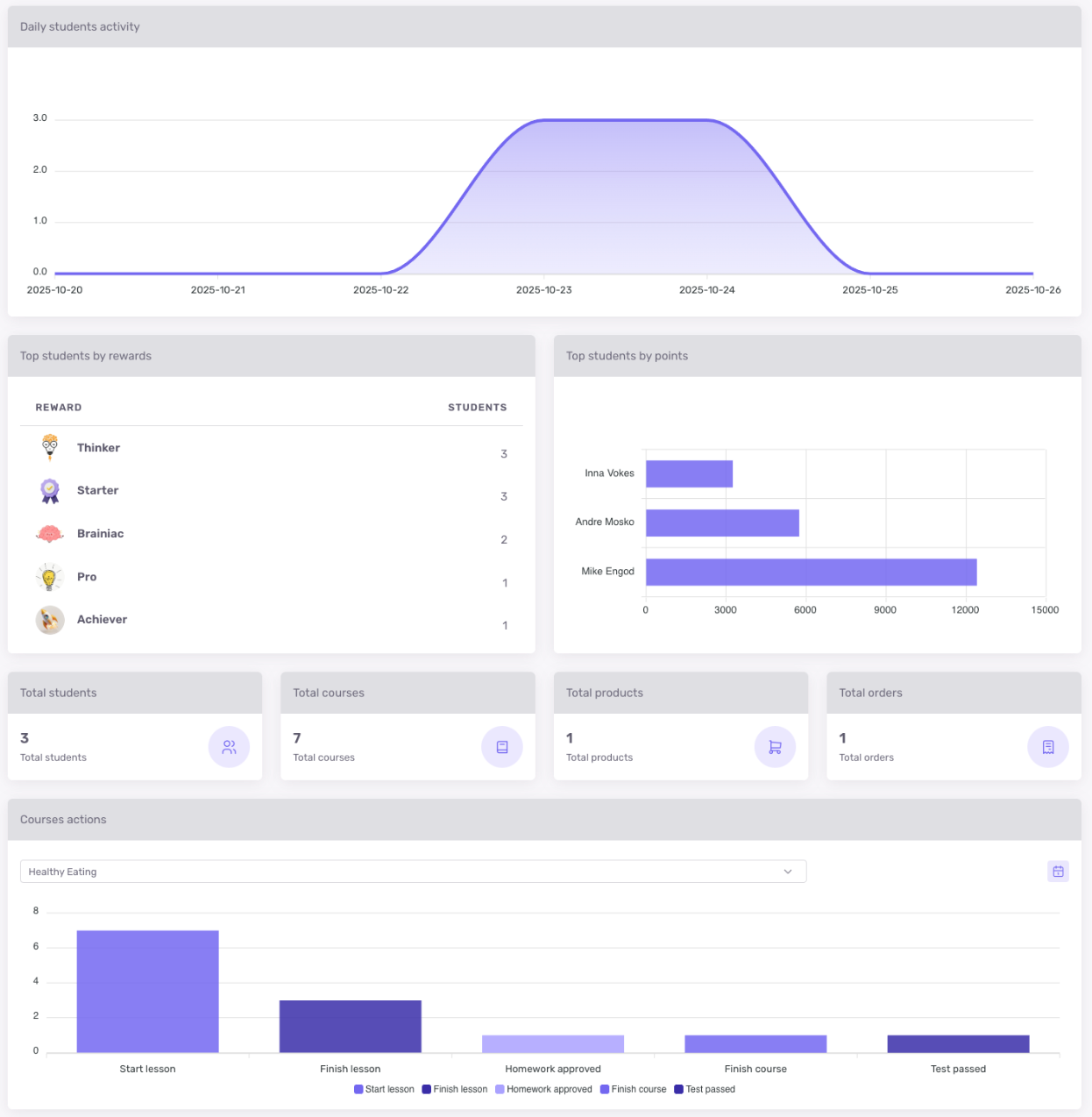 - Включать или отключать страницу наград для студентов.