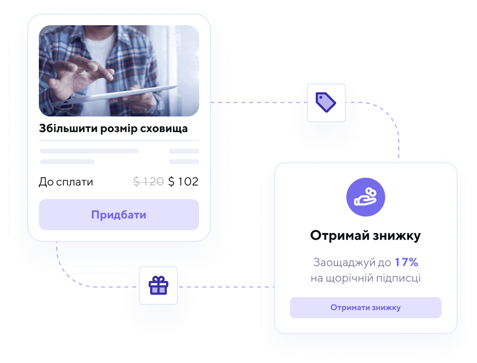 Бесплатный план включает 5 ГБ пространства с возможностью расширения до 1 ТБ за дополнительную плату.