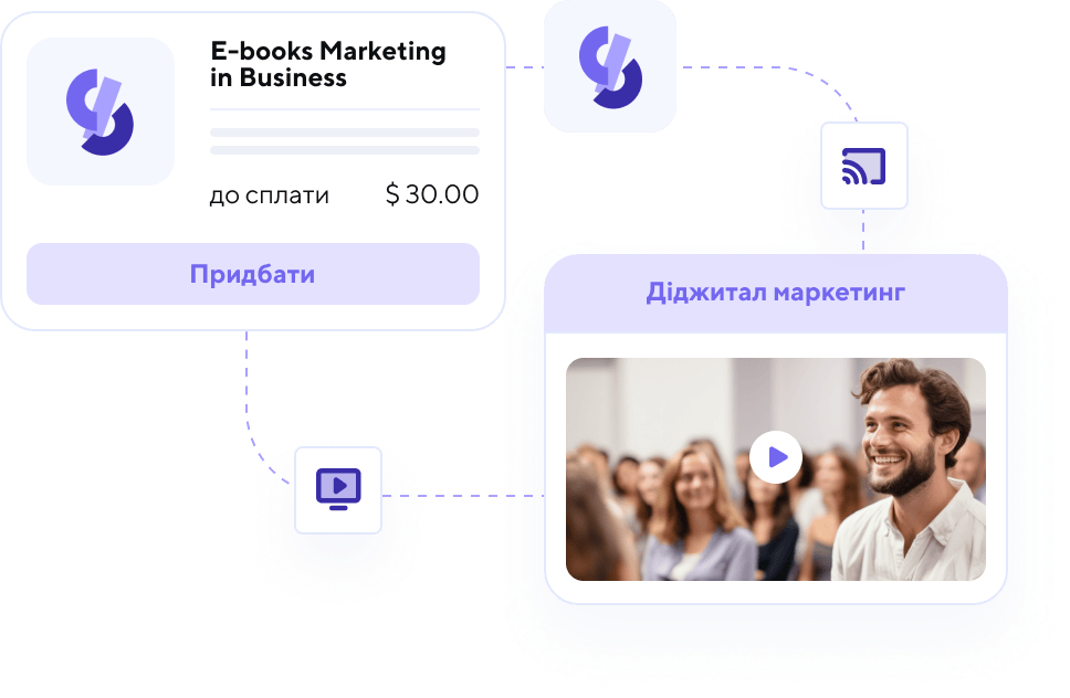 Использование скидок и промокодов поможет превратить посетителей сайта школы в клиентов. Кнопка «Купить», которая есть на странице каждого курса, обеспечивает постоянный доступ к покупкам, позволяя студентам легко покупать курсы, не покидая границ вашей платформы. -